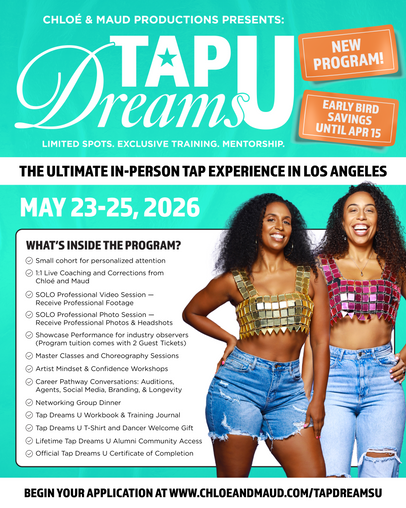 Chloé and Maud are a sister dancing, choreographing, and producing duo. Both Internationally recognized tap dancers and graduates of Columbia University in Film, EMMY AWARD NOMINATED Chloé, and her sister Maud Arnold are creating opportunities to elevate and celebrate the Art of Tap Dancing through Film, TV, and live events. Their work has taken them worldwide, to over 30 countries. Chloé's choreography was recently featured in Jerry Seinfeld's Unfrosted on Netflix, Apple TV+ musical film Spirited starring Ryan Reynolds, Will Ferrell and Octavia Spencer, as well as over 70 episodes of The Late Late Show with James Corden. Maud's choreography was featured in Hulu's hit Theater Camp starring Ben Platt, A24's Y2K, and the hit comedy Freaky Tales. Chloé, along with the support of Maud, founded Syncopated Ladies, a Female Tap Dance Band widely known for their viral videos. With Chloé and Maud paving the way and carving out Syncopated Ladies’ own place in the industry, they have garnished over 200 MILLION VIEWS online from their music videos to appearances on The Talk, The Kelly Clarkson Show, Ellen, Good Morning America, CNN's New Year's Eve, Mariah Carey's Merry Christmas to All, Bel Air, and So You Think You Can Dance. They have received praise from Beyoncé, Whoopi Goldberg on The View, Shonda Rhimes, Janet Jackson, as well as many other celebrities and news outlets around the world. Chloé and Maud are also the co-directors and producers of the critically acclaimed DC Tap Festival for the past 18 years and the Hollywood Tap Festival held at the Debbie Allen Dance Academy. Recognized by the US House of Representatives as arts preservers and ambassadors, The Kennedy's Centers NEXT50 Leaders and in 2018 won the 33rd Annual Mayor’s Arts Awards for Excellence in Performing Arts. Their work showcases strength, unity, and creativity, drawing new fans to the art of tap dance, revitalizing its cultural presence. Through Chloé and Maud Foundation, their 501ⓒ3, they continue to pioneer new experiences for dancers and artists worldwide.